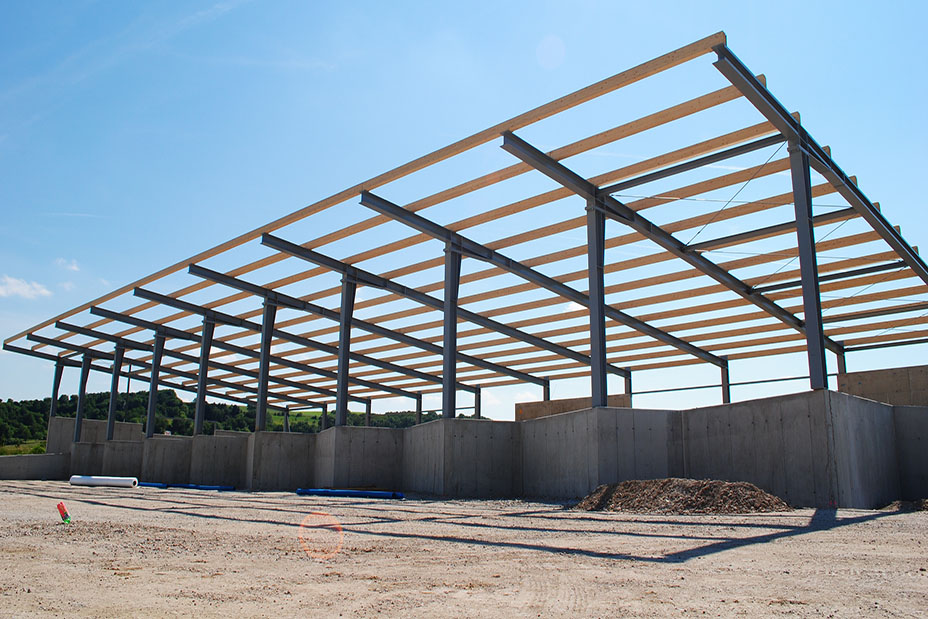 Beim Müllsammelzentrum in Pixendorf wurden für die Überdachung die Steher und die tragenden Hauptbinder gefertigt und montiert.